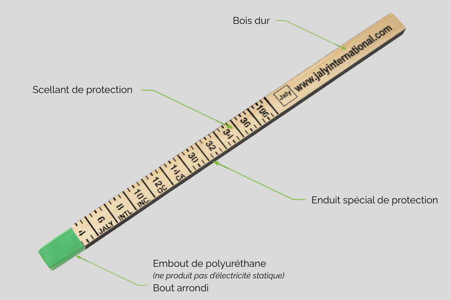 La règle de bois Jaly est une jauge utilisée pour vérifier le niveau d’essence dans les réservoirs sous terre et hors terre.